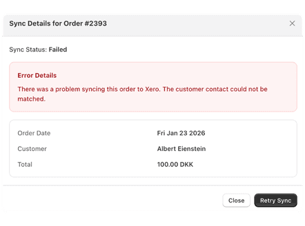 Retry failed invoice syncs with a single click. No more stuck transactions. Handle exceptions quickly and keep your books in sync.